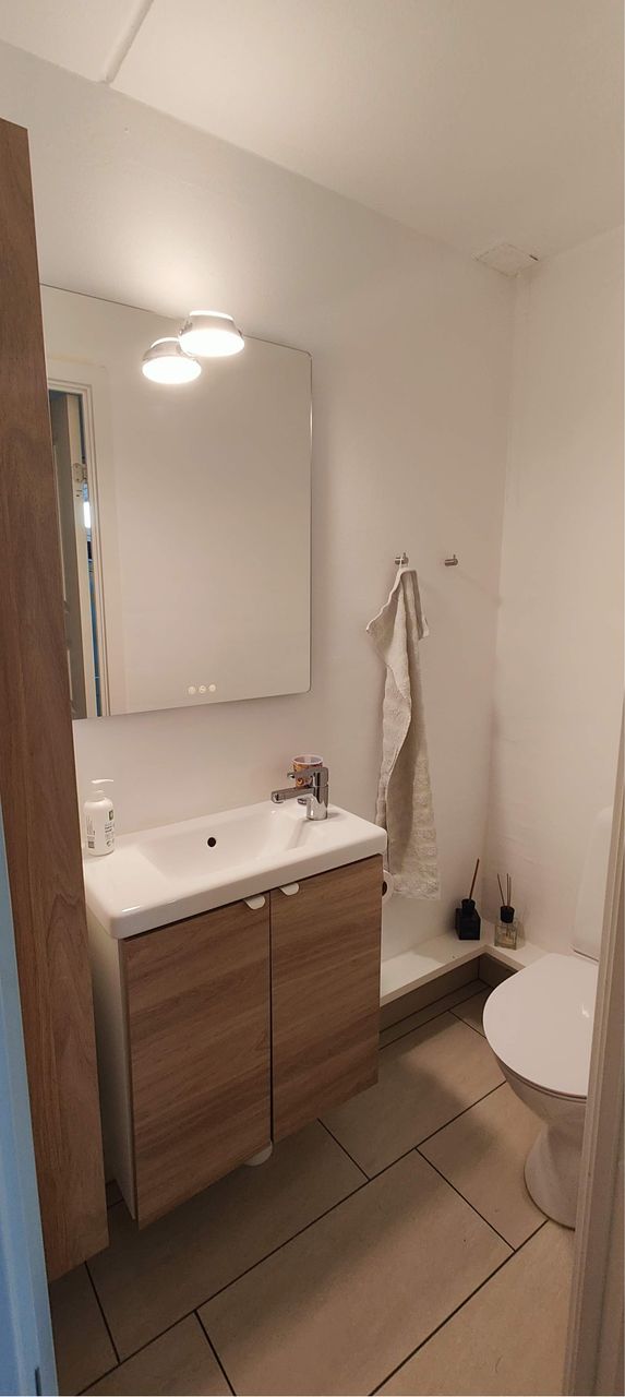 (2022) er indrettet med lyse klinker og gulvvarme.
