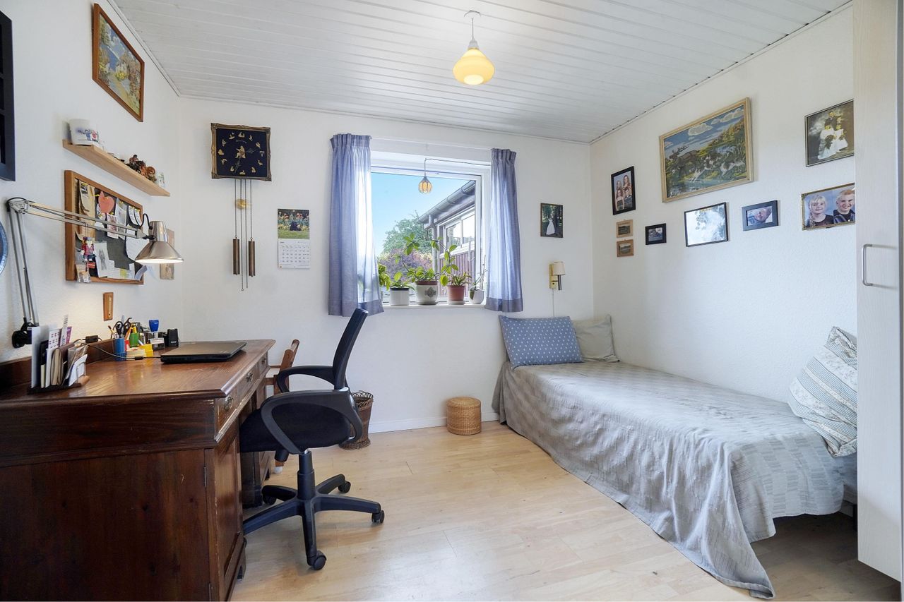 Pladsen er fordelt over 3 rummelige og gedigne værelser, et stort bryggers med egen indgang, entré,