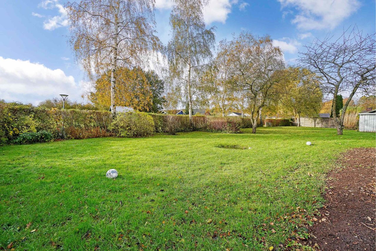 fodboldmål, legeplads og kæmpe plæner. Her får børnene masser af plads at boltre sig på og